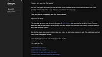wow, every time i think i'm finished with ESCAPE, i play it and realize that there's more to be done... that's probably symbolism for something, but at 5:15 in the morning, i have no clue as to what i...